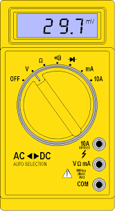 Ojos y orejas eléctricos algunas veces usamos el voltimetro. Tiene dos polaridades una positiva y otra negativa (roja y negra) que se ponene en contacto con la corriente del circuito hay nalogicospero los más comunes son digitales. Autorange / Non autorange .